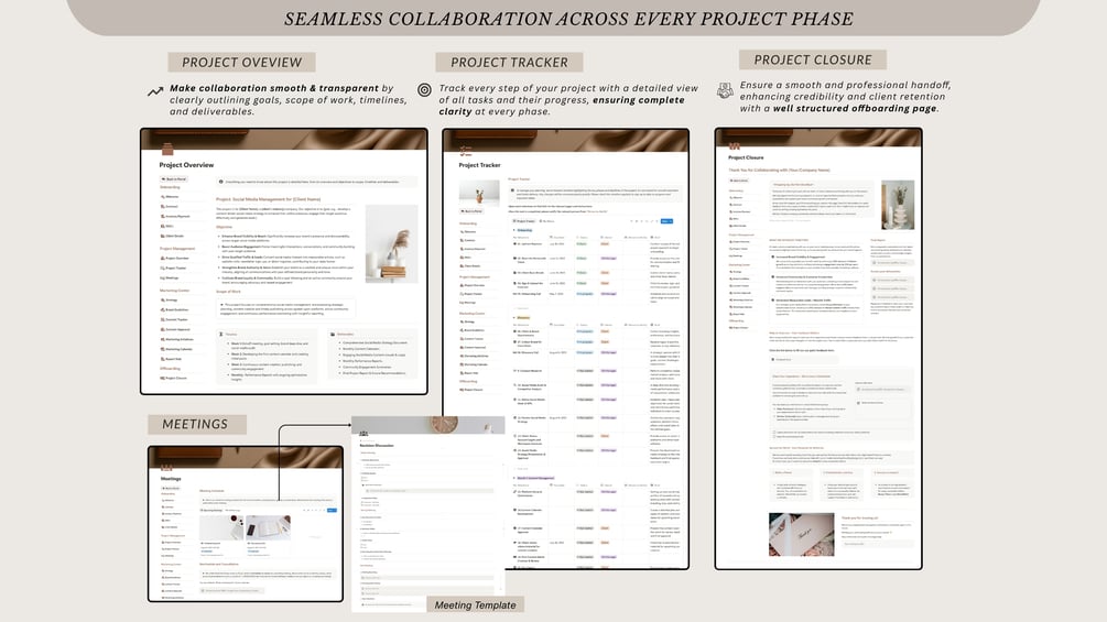 Client Alignment: Ensure smooth collaboration with a clear project overview, detailed project tracker, and organized meeting notes.