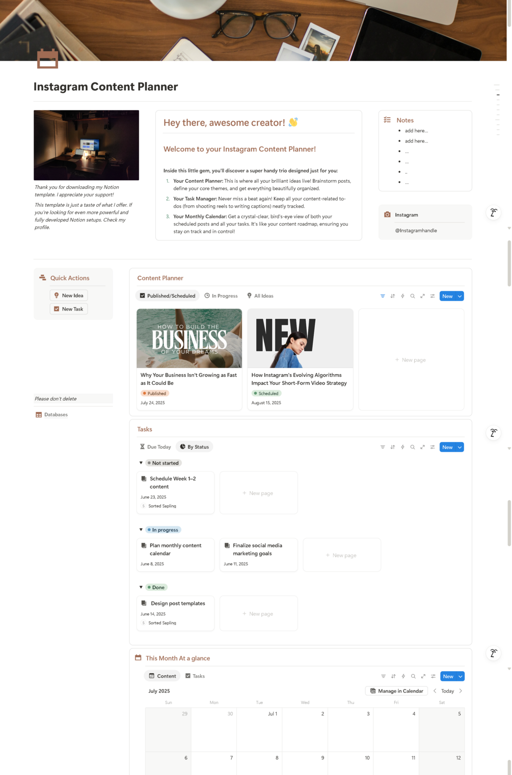 - Your Dedicated Content Planner:Brainstorm & Organize: A central place for all your brilliant ideas, post concepts, and content pillars. Never lose a great idea again!