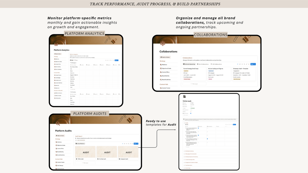 Looking for more? The Social Media Pro Creator Kit includes all the core planner features plus advanced marketing tools, deeper analytics, comprehensive marketing management, productivity planners through 2026, and finance & income stream management.