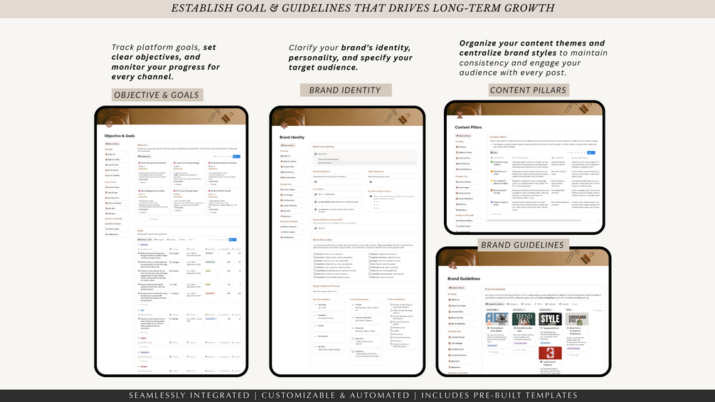 - Establish your brand identity, voice, and target audience within your notion dashboard.